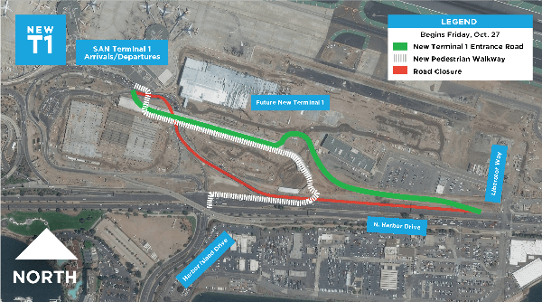 Big changes are here for travelers heading to San Diego International Airport! A new three-lane protected roadway off Harbor Drive officially opens Friday, offering a faster, more direct route to Terminals 1 and 2 — no stoplights, no intersections.